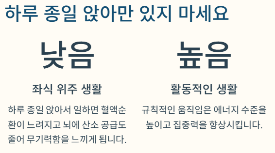 활동 위주 높음, 집중력 향상